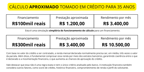 Dica de Ouro: Certifique-se de que os rendimentos declarados são compatíveis com a parcela que você pretende pagar. Em regra, a prestação do imóvel não deve ultrapassar 30% da sua renda bruta mensal declarada.